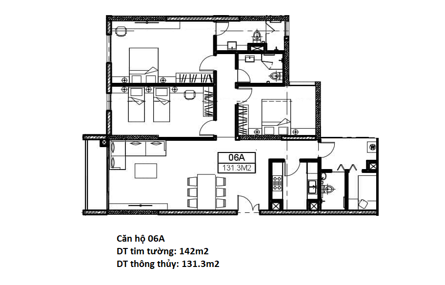 Căn hộ 3 phòng ngủ diện tích từ 105.7m2 đến 131m2 thông thủy phù hợp với: